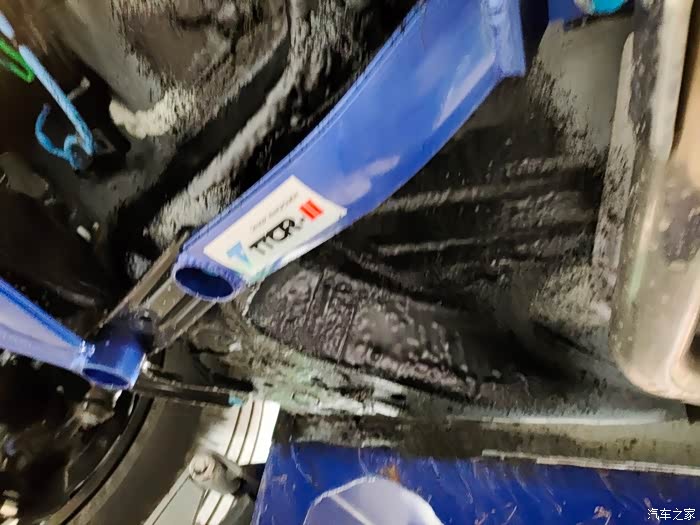 靠近主驾这边,地下有原装的塑料下护板,里面也许是油箱巴,