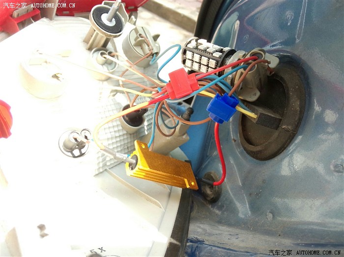 这种LED灯有个不好的地方,就是高亮与低亮状态区分不明显,就是说,开了示宽灯后,再踩刹车,灯亮度变化不明显,后车有可能不会意识到,好在有高位刹车灯,暂时就这样吧,以后再寻找更合适的LED灯泡。