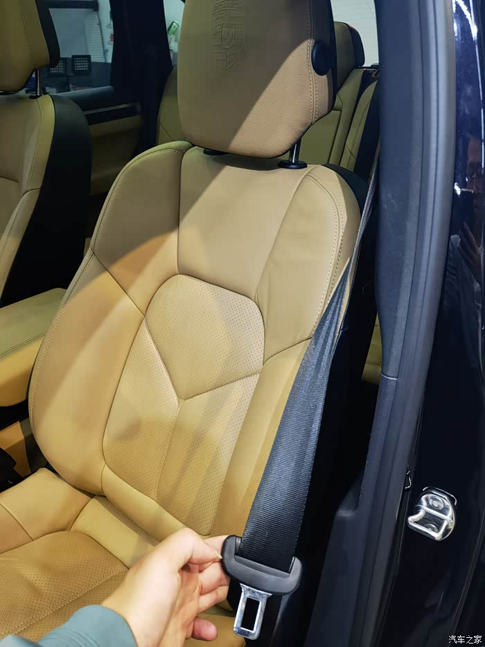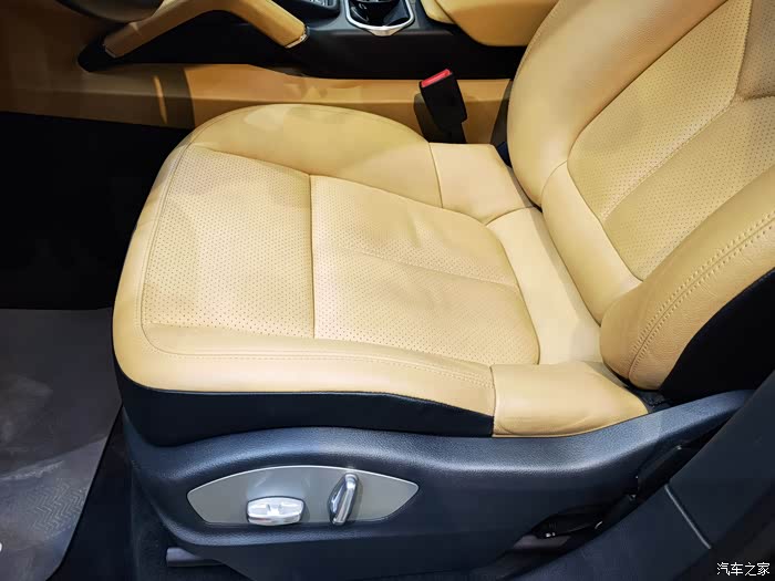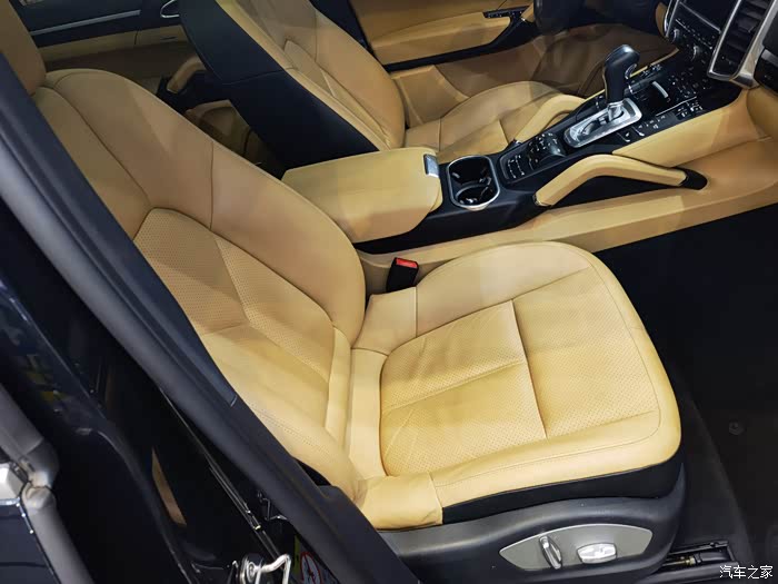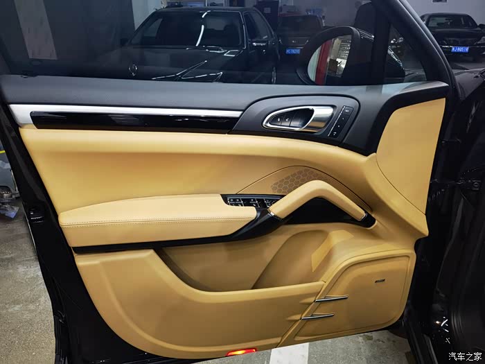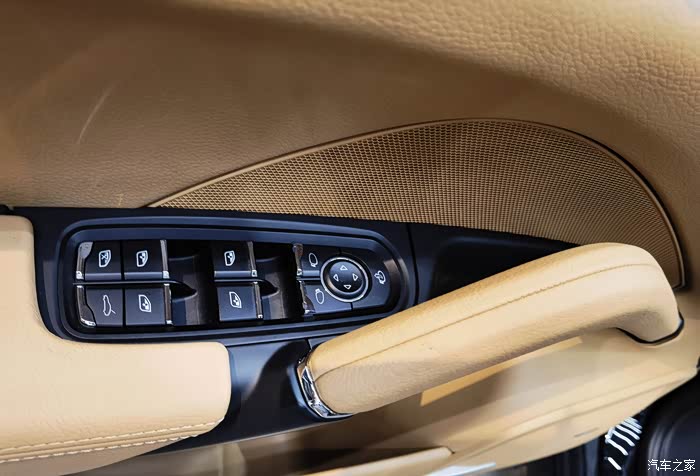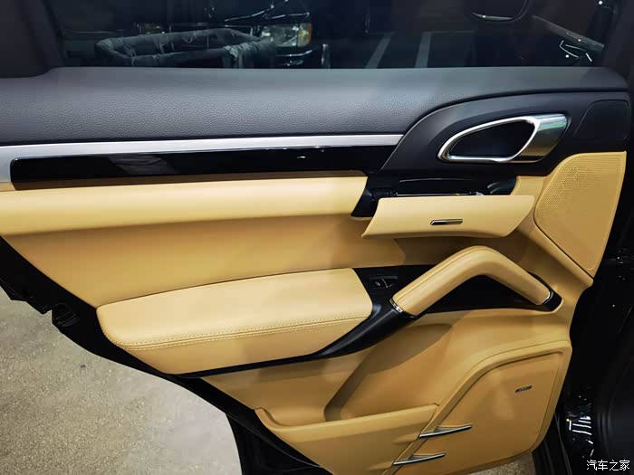 门饰板实际上档次不够高,上部的黑色部分还是用的PU材质,黄色的大部分也是,和同代途锐一个档次,那基础车价贵的理由呢