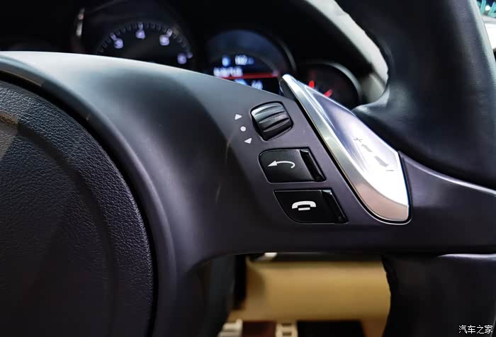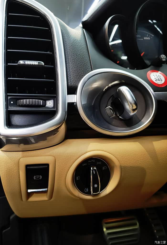 半圆形的空调出风口,有被拉长的感觉,电子手刹按钮,圆形的灯光开关,毕竟和大众是一家的,波尔舍老爷子一脉传承的设计,处处在强调自己跑车基因的点火开关,设计在方向盘左侧