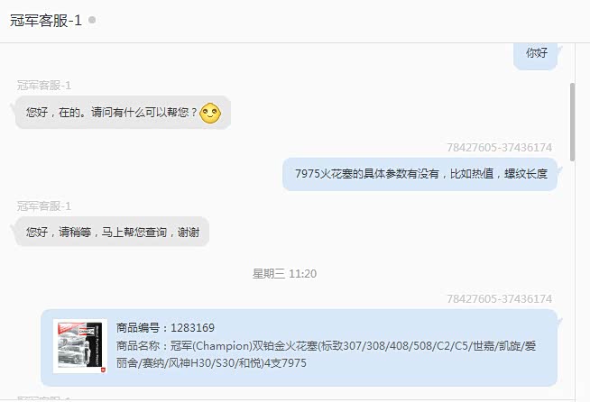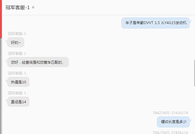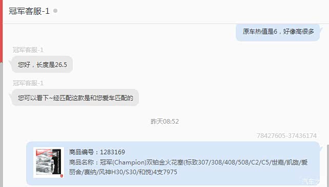 客服热情而机械的回答令人无语,热值,螺纹长度全都不匹配。还经匹配和您爱车匹配?