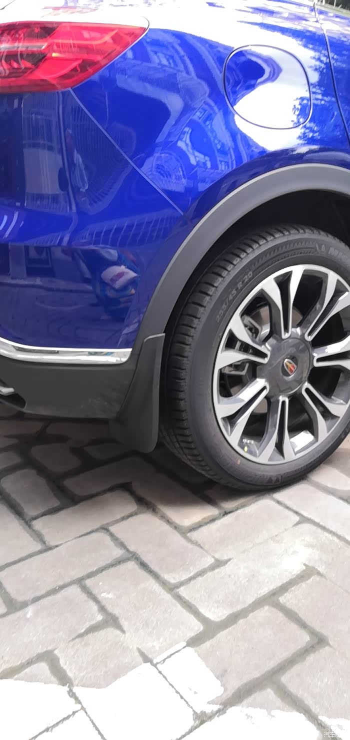 ,然后果断买了个挡泥板,开始也不知道安装后的外观效果啥样,卖家除了效果图就是其他品牌车的实物图,基本没有hs5的,后来想着实在不行就7天无理由,然后就买了一套黑色纯色的。安装还是挺简单的,原车上有孔,直接对好位置拧螺丝即可。话不多说,上图