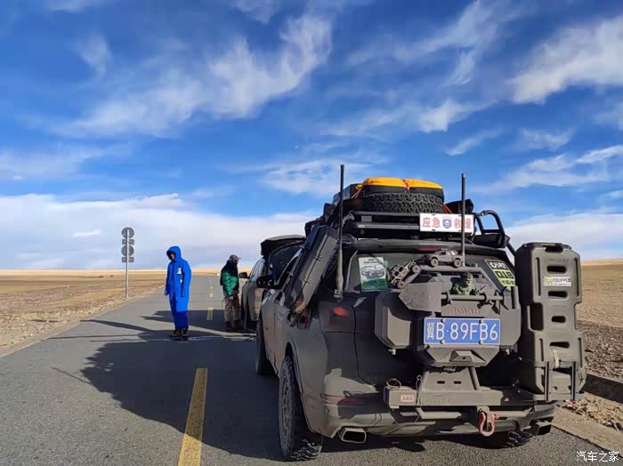 注意,中间那部可是个藏F牌照的探界者,是咱们西藏阿里地区的车友!当我们抵达阿里改则县城,藏族车友热情迎接了我们,当然他车是素车,没改。