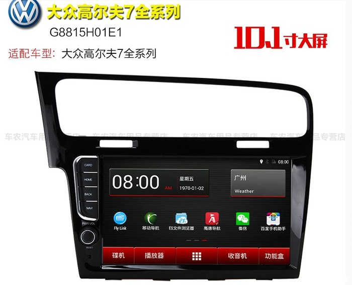 1、完美兼容高尔夫7,大众原厂导航,与原车总线兼容,支持原车信息显示,操作系统winCE,100%原车风格。