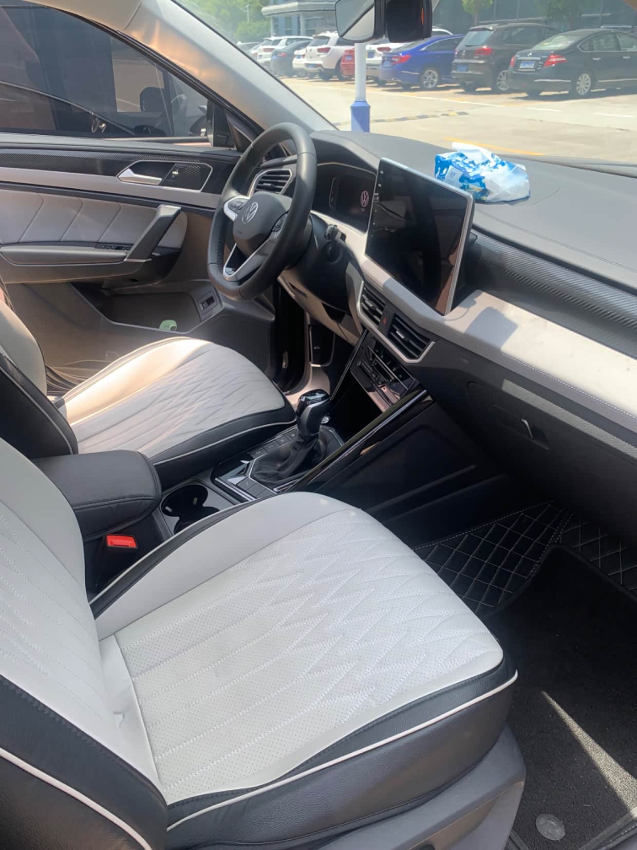 再到车里面查看内饰,座椅,一圈下来也没有发现任何问题,销售也很用心给我们简单讲解车辆的功能,也没什么特别的,油车嘛大众嘛,没啥好介绍的都了解,所以很快就结束了。