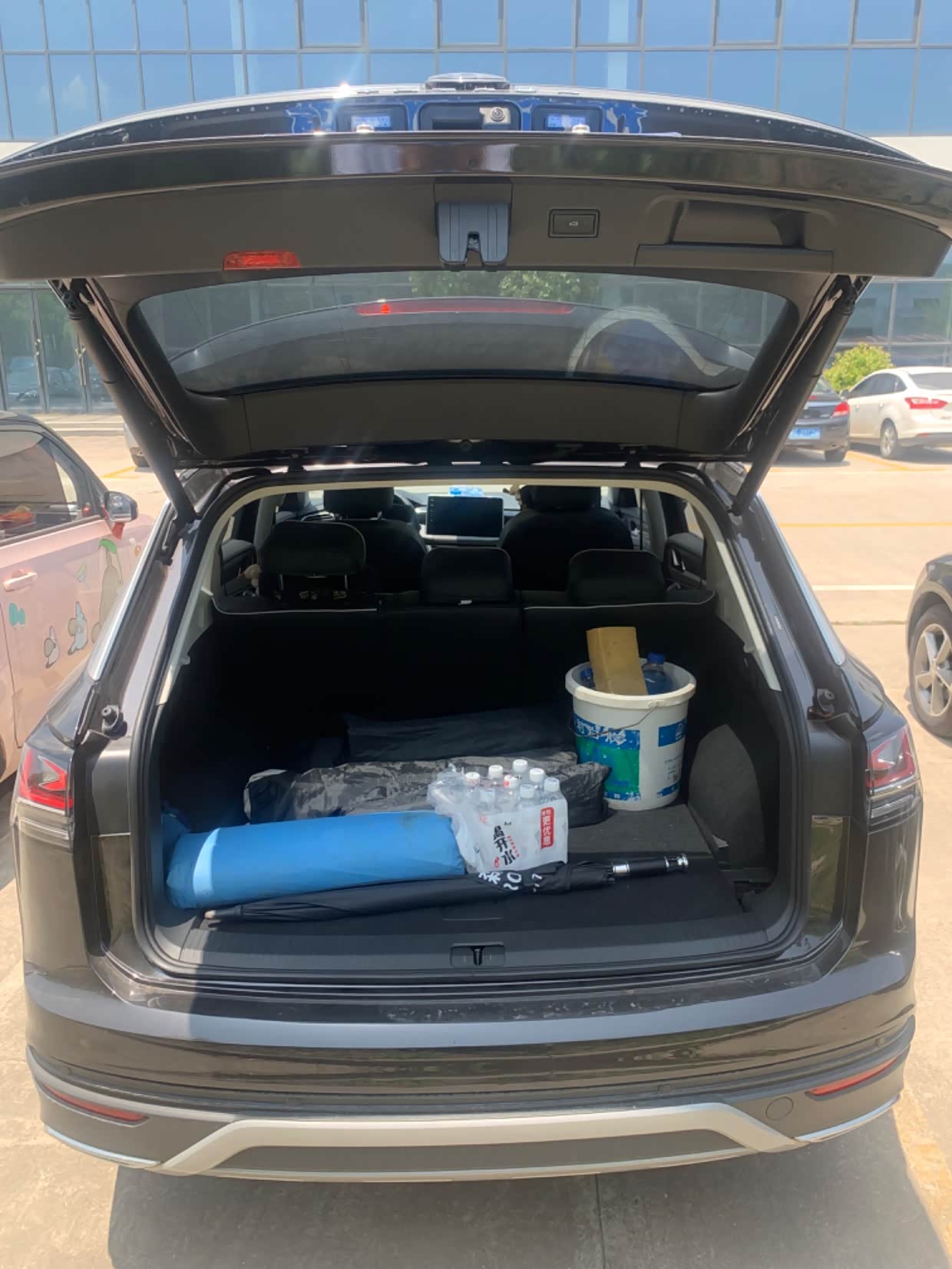 空间打满分,前排,第二排空间都非常大,在二排随便翘个二郎腿,宽敞的乘坐空间很适合家庭使用,驾乘舒适度也不错,第二排放倒后就是一张大床,买个席梦思就可以在里面睡觉觉了,后备箱空间也大,载物空间非常充足,日常用车及长途旅行装行李不在话下随便装。