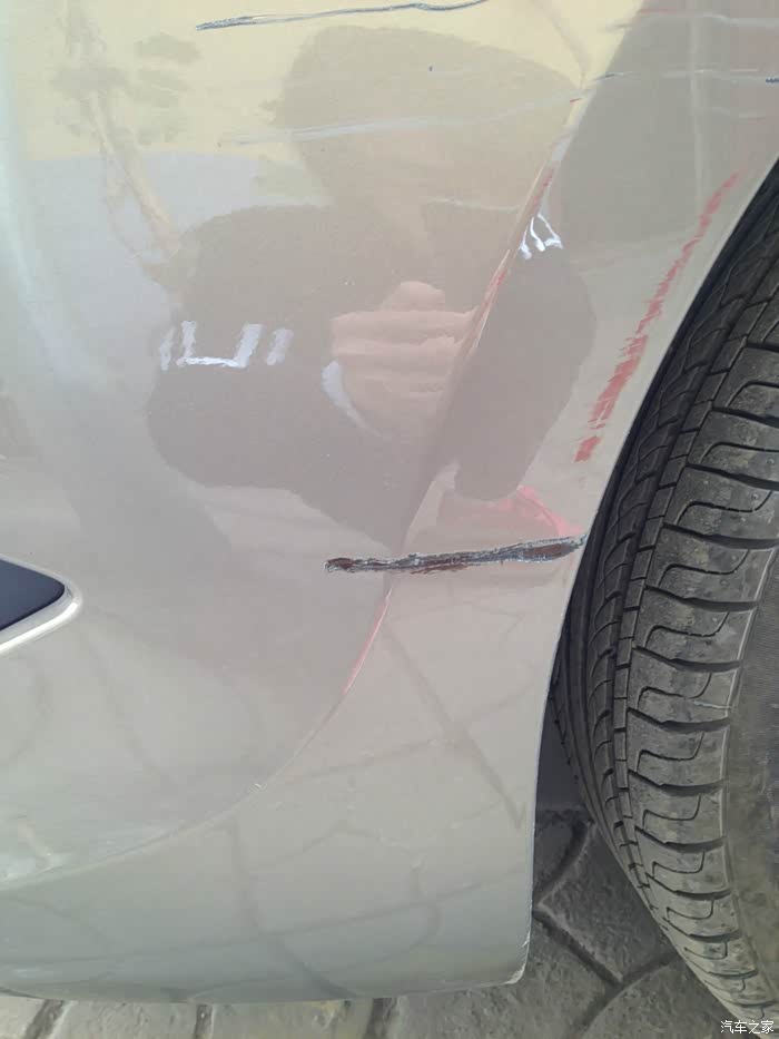 几天前去鹤壁4S店充气的时候问了问,这样的剐蹭修一下要400-500元左右,本着屌丝宁省一分绝不乱花一毛的节俭作风,决定自己动手,补漆。