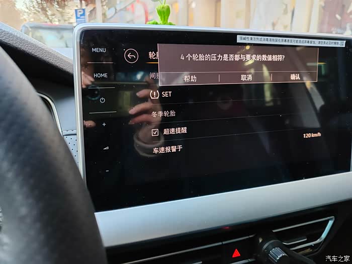根据朗逸油箱盖上的标识,车辆载重标准下的适宜胎压约为2.3。因此,使用充气泵为右后轮胎补气至2.3,并随后在车机系统中进行了胎压缺失SET数据的恢复操作。通过车机设置进入轮胎选项,点击SET,根据提示确认四个轮胎的压力与要求数据相符后,点击确认即可完成恢复。此后,车机系统不再显示胎压不足的警示和图标。