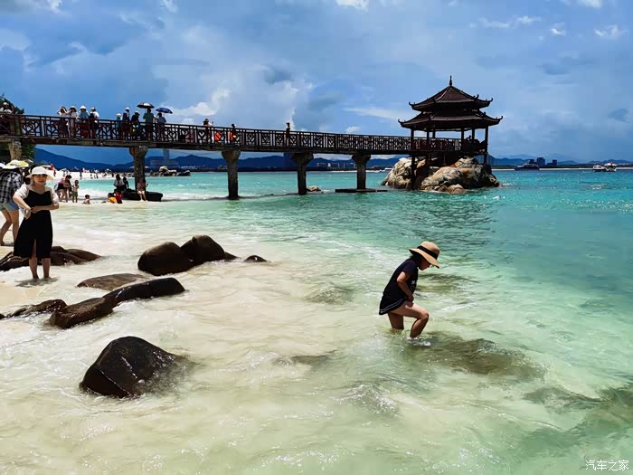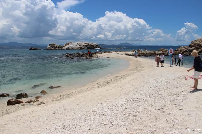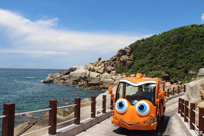 岛上消费比较贵,但感觉还算正规,40元左右一碗面,比机场要便宜。中午自己带点吃的也行。还有就是那环岛电瓶车。138元/位 没有半价票 中间有那么几个景点,都是很一般的景点。不去也无所谓。如果不坐小车,建议先去码头左手边看看,这块景色不错,有很多拍婚沙照的,然后去码头右手边的浴场。这是岛上唯一能游泳的地方,海水非常清澈,比亚龙湾的海水还要干净。其它地方去不去也无所谓了。