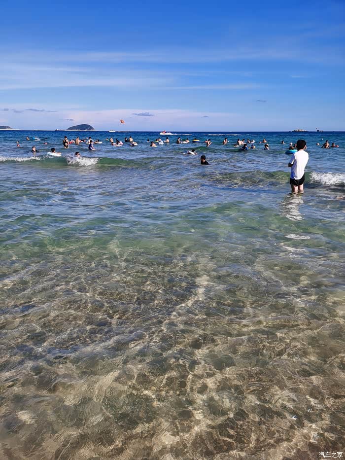 亚龙湾浴场 海水非常干净 比起山东那些海滨城市 这里的海水很温暖 即使是早上也不凉 也没有水面上下温度不一样的现象