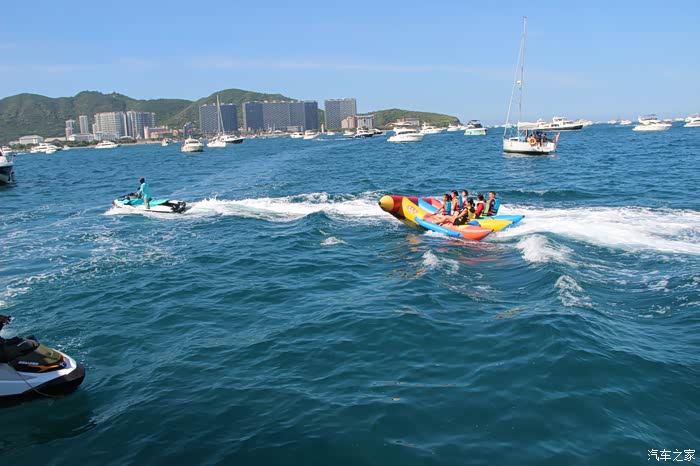想象中包游艇是电影中那样开到一望无际的大海中,欣赏美丽清澈的海水,有海鸥陪伴,偶尔还能看到鱼群或沙鱼。实际完全不是这回事,也就是装B拍照。游艇码头是一个内海里,大约在鹿回头附近,这一带的海水很脏。而且周围密密麻麻全是游艇 在游艇上也没有什么玩的,钓鱼船长说了很少有人能钓到。摩托艇还算不错。那个橡胶床太坑了,260元/位。比亚龙湾那边贵多了。十分钟下来一千多元没了。最坑的是潜水,这一带的水质太差,潜水的地方只有两米左右,太深了也看不清,如果不买脚蹼(150元),教练还不让自己游。说潜水其实是被教练按着在离水面一米深的水中看了几分钟鱼。真要玩潜水还是去吴支洲岛或西岛那些水质好的正规潜水地方吧。