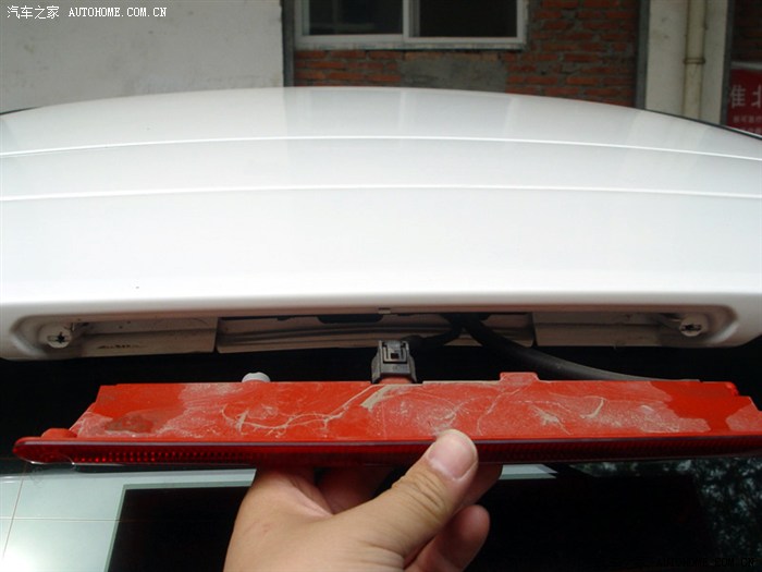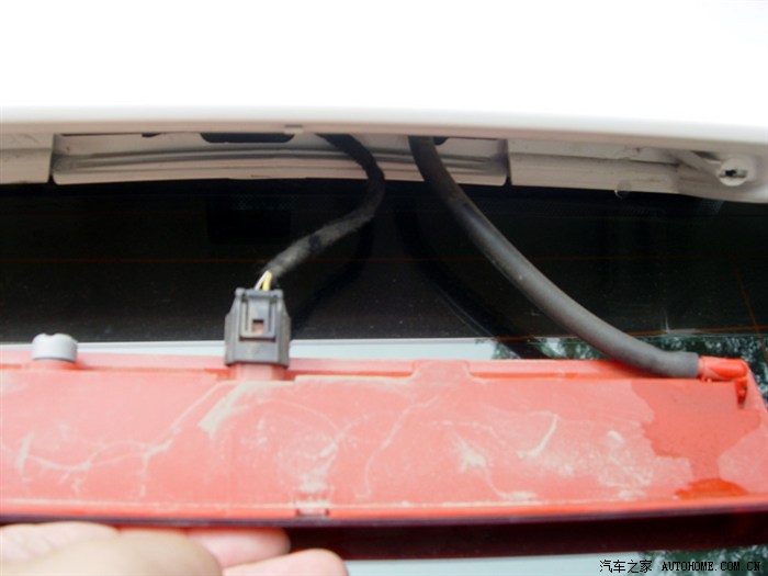 先拆卸高位刹车灯,一个是水管,一个是电源卡扣……