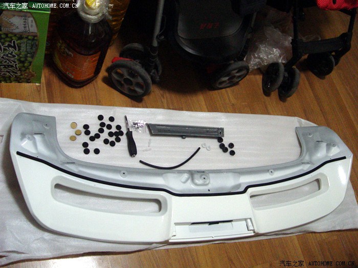 上X宝,看了很多家尾翼,有品牌的,有只有底漆的,有烤好漆的,有和原厂一样卡位的,有简化不用卡子的还有号称正宗原厂的(价格不菲)……琳琅满目,下了很多天的功课决定放弃原装尾翼(主要是价格偏高),开始在两家副厂尾翼间摇摆,价格差不多,带漆都不到380元,两家销量都不错,看评价也都可以,一个是原厂卡扣位,一个是简化不用原厂卡扣的,最终决定购买销量最多的那家,(为了避免广告嫌疑,不能说商家名称),因为还想换2.0高位刹车灯,他家有2.0高位刹车灯可以购买,(当时怕什么喷水问题,怕麻烦),掌柜的告诉我不用换,他们有替代喷嘴完美解决,我考虑既然换了就用2.0白色的灯吧,我个人也比较喜欢2.0白色的灯,依然决定连高位刹车灯一起换。……等快递!很快货到了,不过收到货的时候下雨,按捺住当时就要换的冲动,先做好更换的功课,问好需要的工具,从五金店里购买了7号套筒、T-20梅花螺丝头,套筒手柄, 等待天晴!终于等了两天天放晴了,开始自己动手更换,打开后备箱盖,先用撬棒撬开装饰板,撬的时候一定要注意用力,稍微不慎就会把装饰板里的卡子弄断,我就把中间的卡子弄断了,所以一定要小心。不过万一要断了也不要懊恼,那些卡子主要是固定的,问题也不大,我就是用“哥俩好”把断的卡子有粘回去了。反正不影响使用。等到开始拆螺丝才发现,7号套筒根本没用,我仔细看了螺丝上有8的字样,猜测可能使8号螺丝。又去购买了一个8号套筒,果然可以使用。不知道是个体差异(我的车出厂是2013年2月),还是固定尾翼中间的3个主要螺丝本身就是8号,希望大家拆开装饰板后仔细查看下。(具体螺丝位置我在图片上标注,下面的图片请大家仔细观看)。先在屋内把尾翼包装打开,粘贴防水胶条,贴的方式如后面图示,这个位置装上后正好压在后挡风玻璃上,贴好胶条后,把每个卡扣装好,三个大的,两个小的。准备工作到此基本完成。