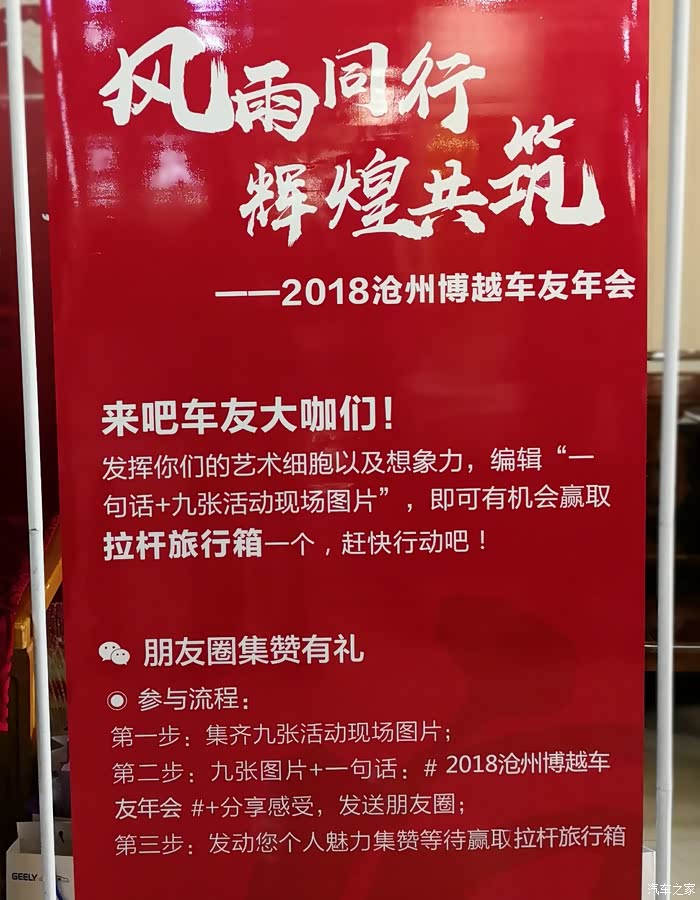 盼望已久的沧州车友年会在沧兴大饭店举行。我第一次参加,心里非常高兴,早早的来到现场,和大家相聚,与博越结缘。感谢会长组织得力,年会非常圆满。也感谢车友们的辛勤付出,使我收获了很多知识与友谊。下面与大家一起分享精彩故事。