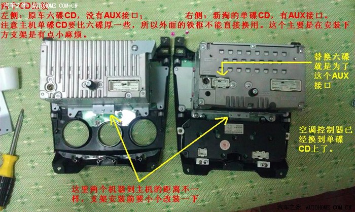 CD换装,只要是为了要AUX接口。在TB淘了一个原车单碟CD,将原车6碟CD换下: