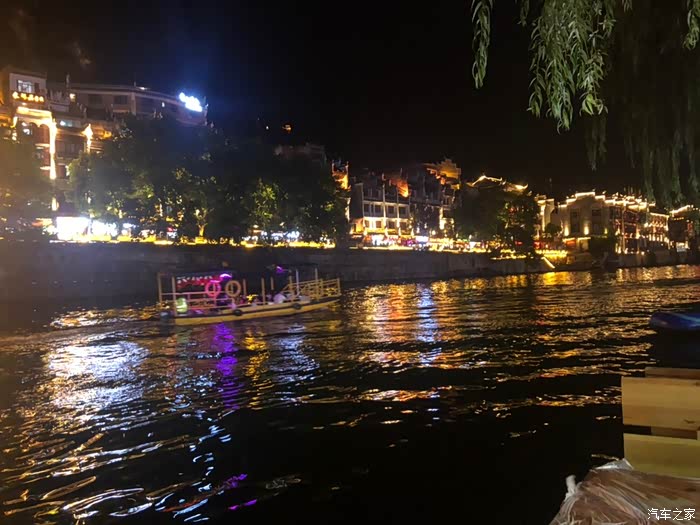 夜晚的舞阳河有人坐船欣赏两岸风光
