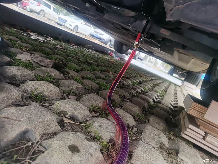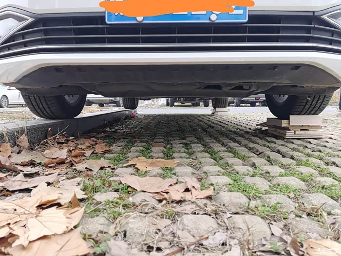 先看下施工条件,变速箱油因为要用溢流阀看液位,必须要水平,没有举升机,只能一边上路牙石,另一边用手里的两个坡道,路牙石和坡道高度一致,条件太艰苦了。旁边的垃圾不是我扔的,回家看图片才发现有垃圾。