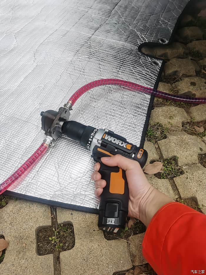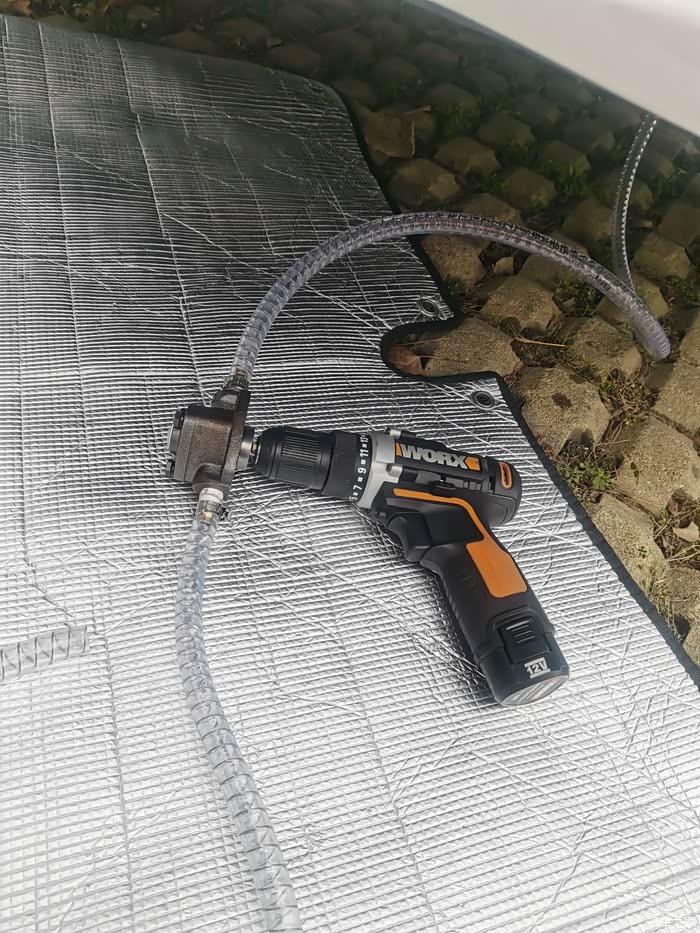 加油用的工具,摆线泵加手电钻,威克士很好用,抽机油也可以,但是管子要换