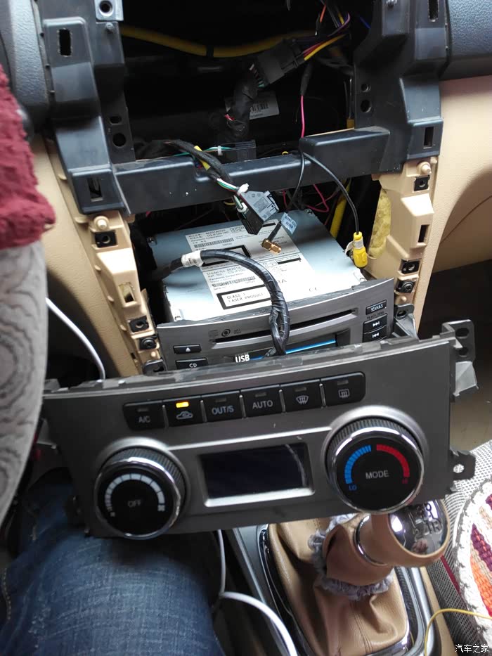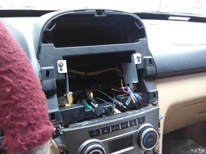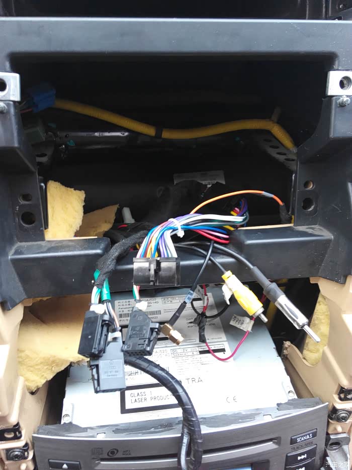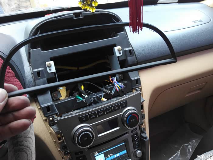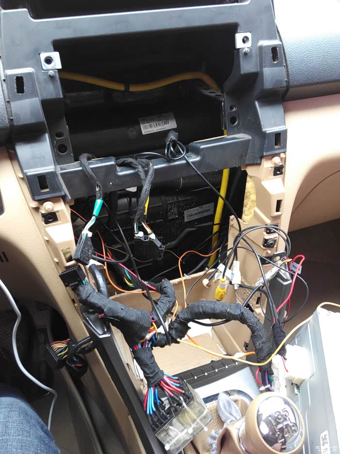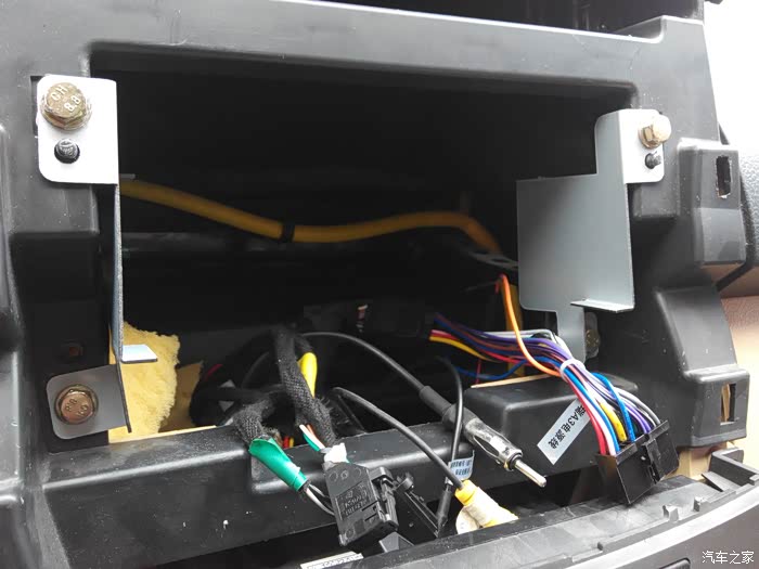 自带的支架用原来的螺丝固定 线束都拉出来 最右侧是导航的无损插头和原车插头对接 倒车检测接上 依次收音机 gps天线(我是使用的以前导航上的gps天线直接没用新导航自带天线) 后视插头 雾灯 四闪