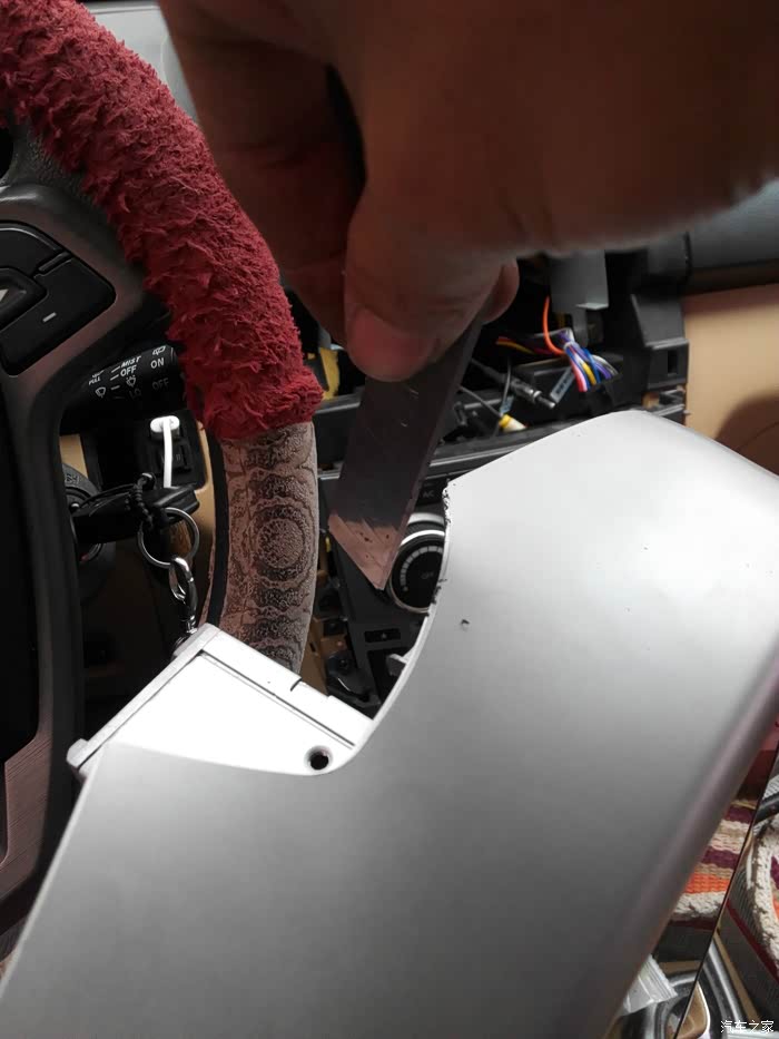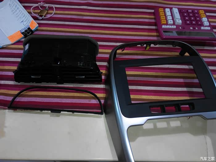 空调面板上面的小耳朵碍事 掰掉 后来才知道 不需要的 导航面板上雾灯两边的卡扣没有