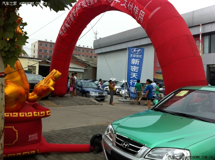 6月14号,在我们新密市的天行健4s店举行了伊兰特的出租车的交付仪式,我有幸光临现场。在这里我也给大家介绍一下伊兰特出租车跟普通私家车的区别:出租版的伊兰特都是单气囊(没有副驾驶气囊),没有点烟器烟灰缸,后门为手摇玻璃,车的内饰为灰色,顶棚为塑料材料,地板是橡胶材质,原厂赠送脚垫,原厂有安装计价器、空车灯、电台、气罐的线束,cd为单din,驾驶座的高度不可调节,副驾驶后边有不知道什么接口,据说底盘特别是发动机的部分经过了特别的加强,其他的与普通版无区别。