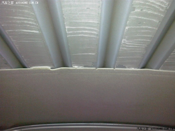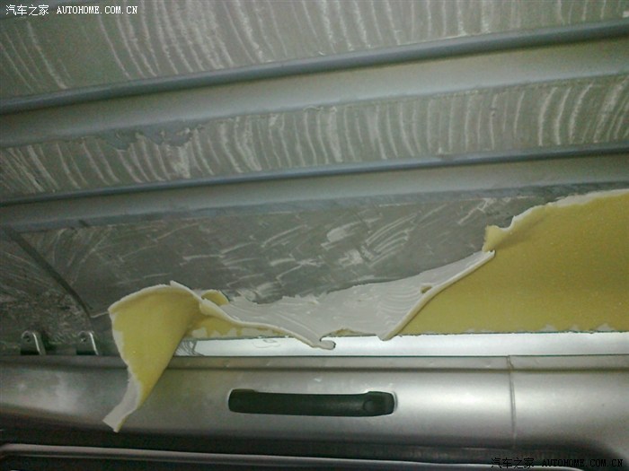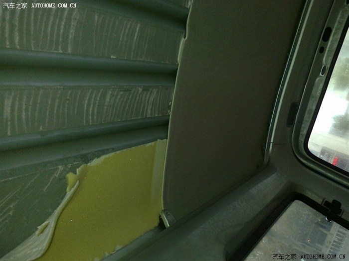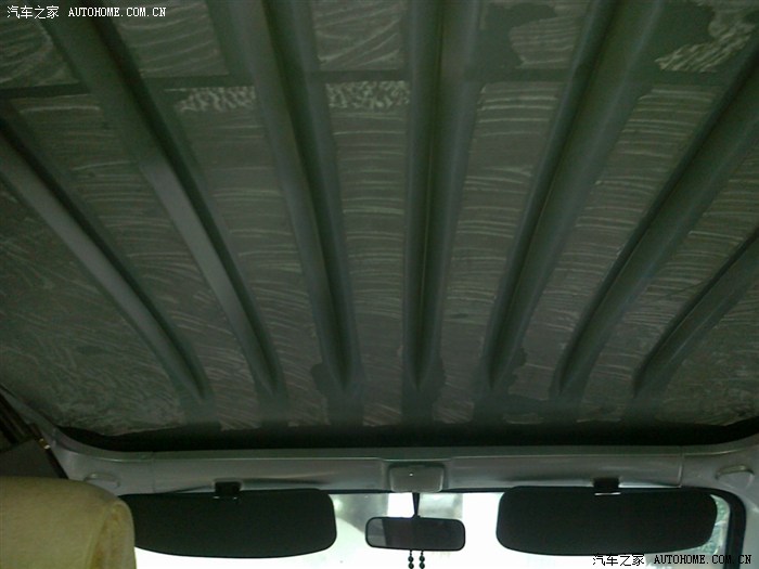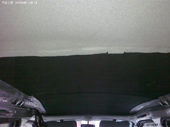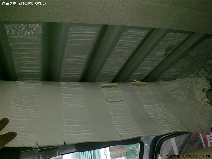 还有车顶,封一层10MM的或7MM的。我封了2层,封第二层10MM的,好难装空调,很不好施工。整体上顶棚也不好施工,最好前中后分三段施工,原车也这么封。前门顶棚完整度高施工就难,分2块施工轻松些,全车分6大块。对剪裁手艺有考验。