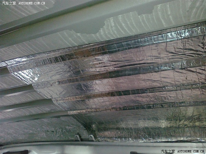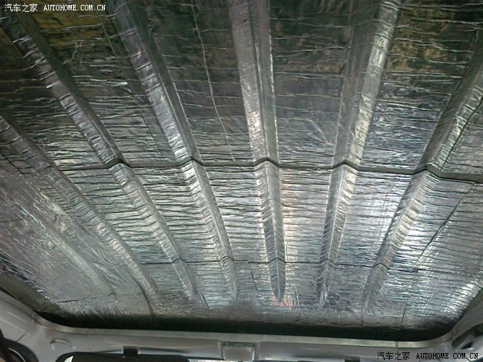 我图省事,大块往上贴、这种需要加热的止震板,还是小块小块的贴效果好,我建议大家用丁基橡胶的。虽然贵、但施工、环保、效果都非常好。车顶建议用10MM的隔音棉、打算装车顶内饰布可以用带铝膜的隔音棉、买瓶喷胶粘回去。