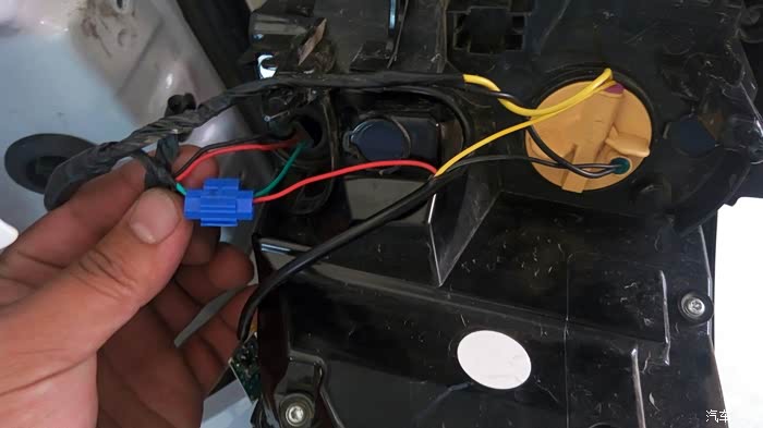 我先接的转向没破线扣出线的小胶塞把线塞进去,正好里面有铁片可以夹住。黑接黑黄接黄