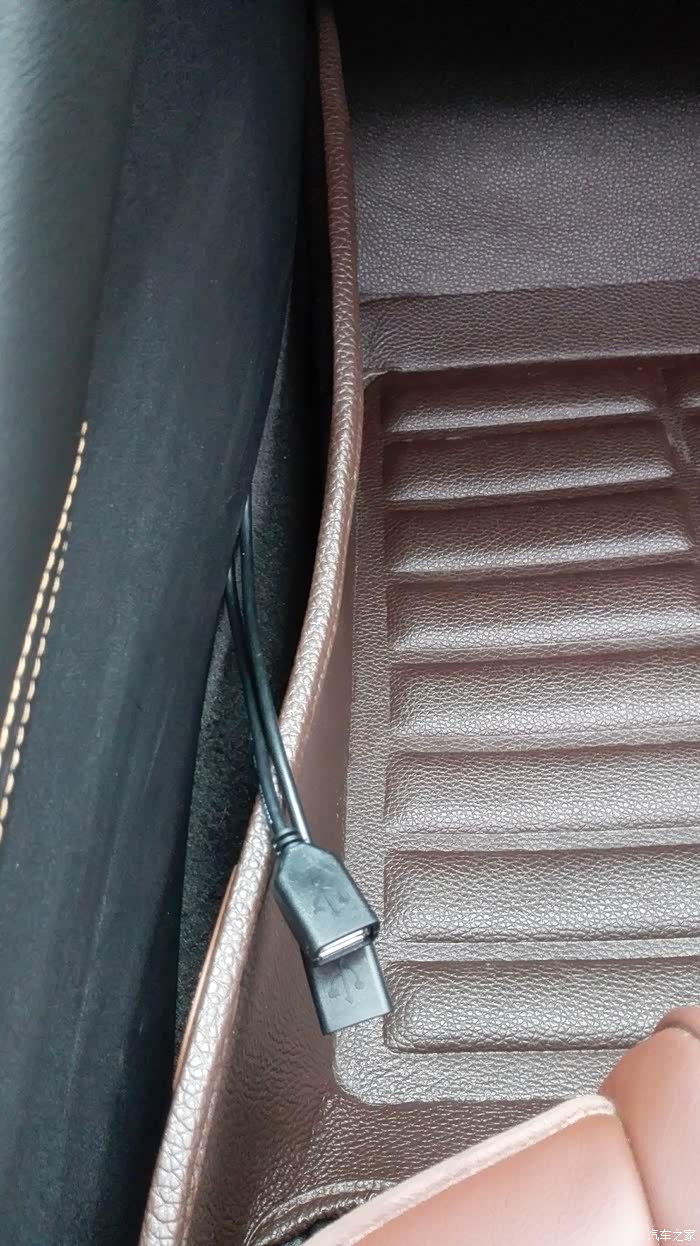 模块usb接留在这里,可以插u真听歌看视频,也可以从u盘升级导航很方便,不用就塞下脚垫就看不到了