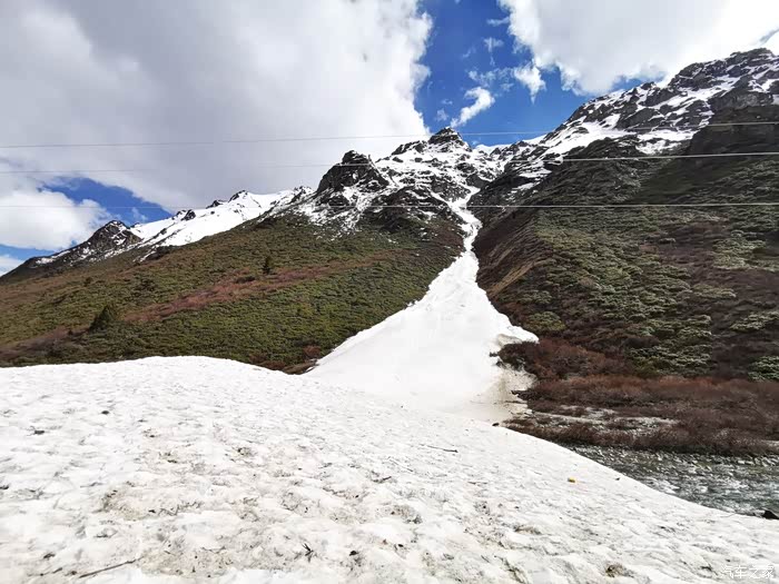 血崩阻断了国道318,这是人工把道路的雪除掉了。