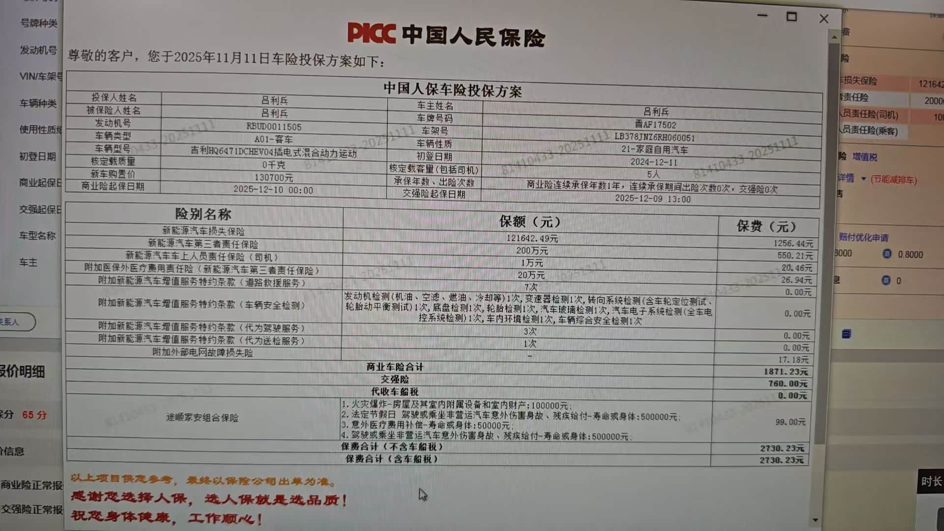 各位星舰7第一批购车的车友,最近保险公司有没有给你们打电话呀?保险公司这两天给我打了好几次电话,我才让反应过来,星舰7买车马上就满一年了,时间过得真快。今天也没什么好的内容要发,就来说一下我刚上的保险价格吧。首先要说的一点是,这种带有电池的车子,并没有网上像传的那样,保险是一年比一年贵的,如果上一年不出险的话,整体的保险费用会下降30%左右。我这次,是第二年上保险,去年新车花了3900,今年上的险种交强险,车损险(各家保险公司这里的保额也有差距,请仔细甄别),三者200万,车上人员责任险,医保外用药责任险,还有一个外部电网故障损失险,途顺加安组合保险,是一堆杂七杂八的保险,总共花费2538,比去年多了一些小保险,价格降了1362,这是没出险的情况,也对比过好几家,就他家的保险还比较合经济点。还有就是你车子保险可以上的时候,会接到很多保险公司的电话,这个时候一定不要着急,要仔细听他们的保险的项目以及金额,互相对比,选到一个合适的经济的保险公司。当然,一些被保的项目,如果你感觉不实用的话,也可以要求他们减掉,或者增加。还有最重要的一点,就是这种绿牌车,目前是不收车船使用税的,大家记住。