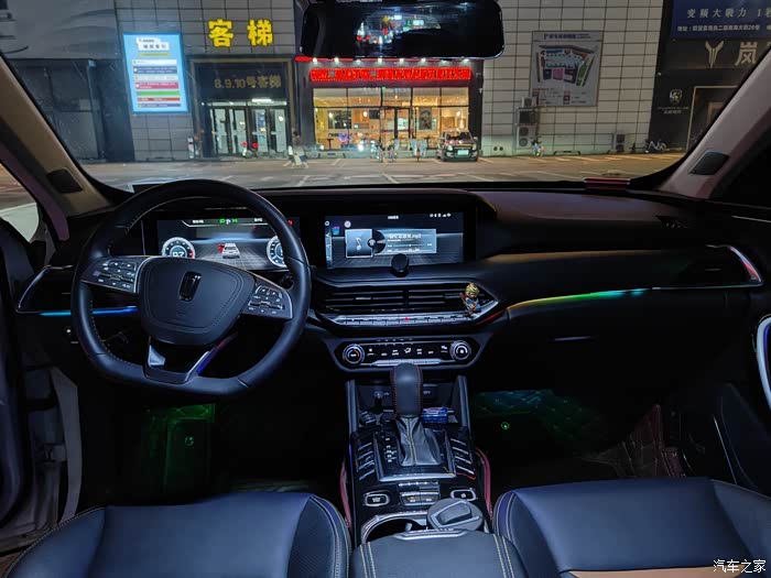 夜间的内饰来一张美美的照片,不得不说现在国产车在内饰体验真的很不错,双联屏设计占据了大半个中控台,随手触摸到的位置几乎软性包裹,还有那一体式运动座椅格调高尚