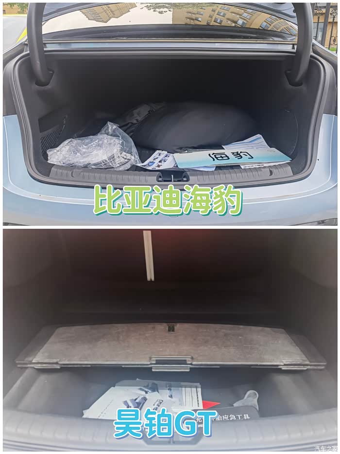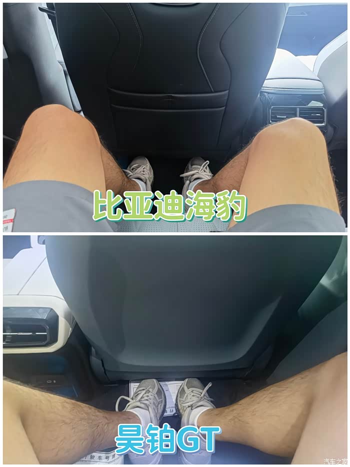3.车内空间。二者腿部乘坐空间均能满足我,伸脚后腿部没有委屈感,但是后备箱高度昊铂更高,取拿东西的体验感优于海豹。