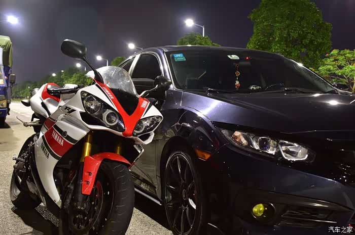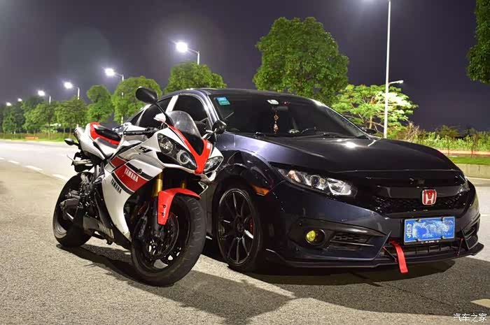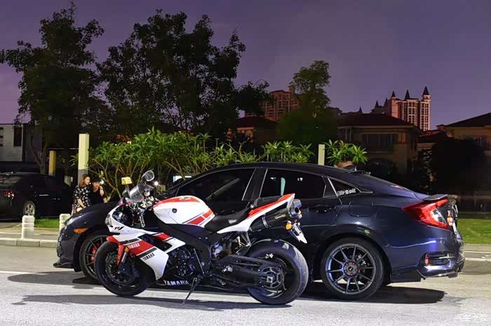 我比较偏喜欢摩托车的刺激性和速度和声音,汽车上永远给不了这个感觉。R1和思域的合照,来几张高清大图给大家看看。