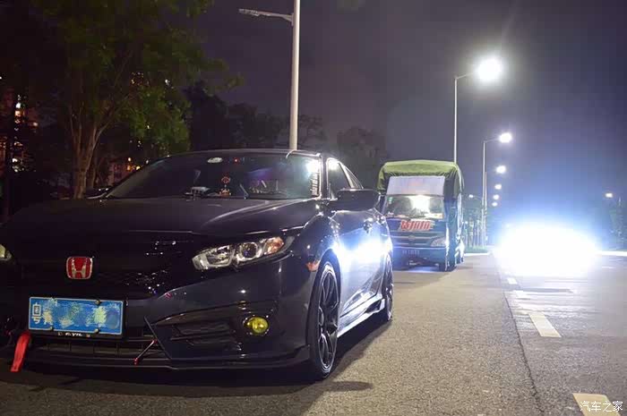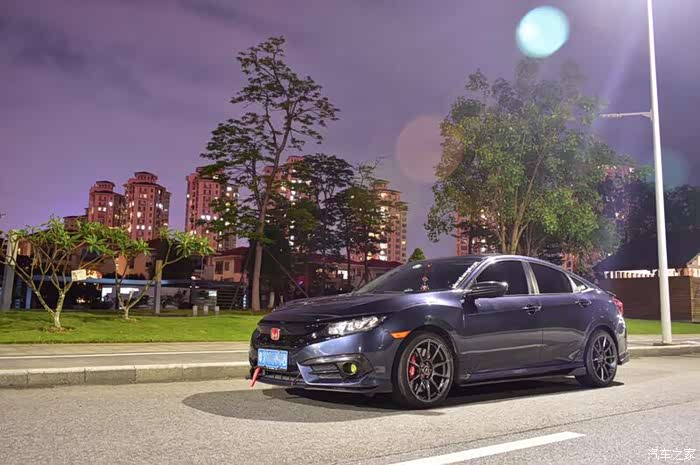 汽车之家的各位车友们大神们老板们大家好,很久之前就想发帖跟大家来打个招呼,但是一直在忙没时间拍照所以迟迟没来。当初选车没什么犹豫的,就冲着思域去买的,就是纠结了一阵子在想白色好还是暗金蓝好。但是怕白色容易脏,多人选购,然后找了现车暗金蓝看,看见不错,就买了暗金蓝,怎么知道买回去才知道暗金蓝原来也是这么容易脏,也是这么多人买,后悔没买白色,因为感觉白色比较好改。最近有点时间拍了一些照片发上来给大家看一下,虽然车不是改的很吊,也不是改的特别帅。就是想互相交流一下,认识多点车友。文化水平有限,不太会写东西,长话短说了。直接上图了。