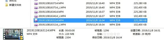 原来的记录仪,会把同一段记录录制成两个文件,3分钟录制成一个文件,都是29帧/秒的速率,一个是2384×1296的分辨率,提交容量是220mb,一个是828×400分辨率,100mb的容量,这个录制的原因,厂家的解析是高分辨率是作为主要记录,低分辨率是作为用手机wifi连接记录仪查看的时候读取使用的,个人觉得,同时录制两个一样的文件,多一个保底,能降低因为内存卡损坏了某个扇区导致录像没有了的风险,虽然减少了记录的时间,但是多了冗余,其实是值得的。