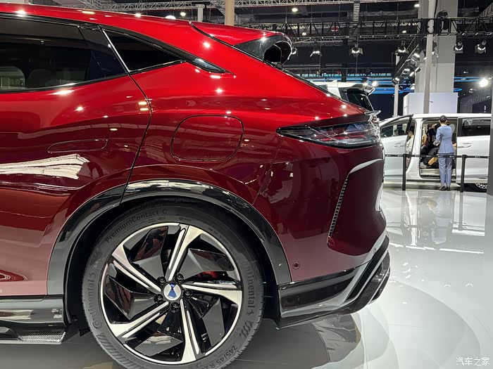 车身侧面来看,新车采用了溜背式轿跑SUV的车身结构,略向下倾斜的车顶线条让新车的动感效果得到提升。尾部方面,该车采用当下流行的贯穿式尾灯组,搭配两侧大尺寸C型导流槽装饰,以及内嵌梯形牌照区域造型,让这款车的视觉效果得到很好地提升。同时,其尾部保险杠下方加入镀铬元素进行妆点,增加时尚感。