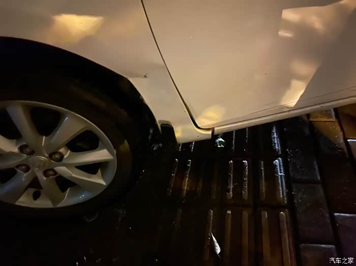 停车撞到路边的杆子了,位置是左边车门前面