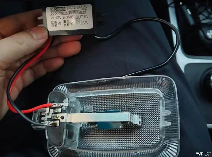 非常简单,不到十分钟搞定:买个降压模块把它的正负极接到阅读灯的正负极上(第2张图就是阅读灯正负极),我是焊上去的(第1图),也可以用端子或者线束接上。降压模块有u***输出接口,用电源线连上行车记录仪就可以了。实测锁车几分钟记录仪就关机,不会一直通电。还有个小插曲,我的行车记录仪是流媒体,需要2.5a电流,一开始用普通的电源线老是频闪,换了根粗一点的短线问题就解决了,大家要注意这个问题。