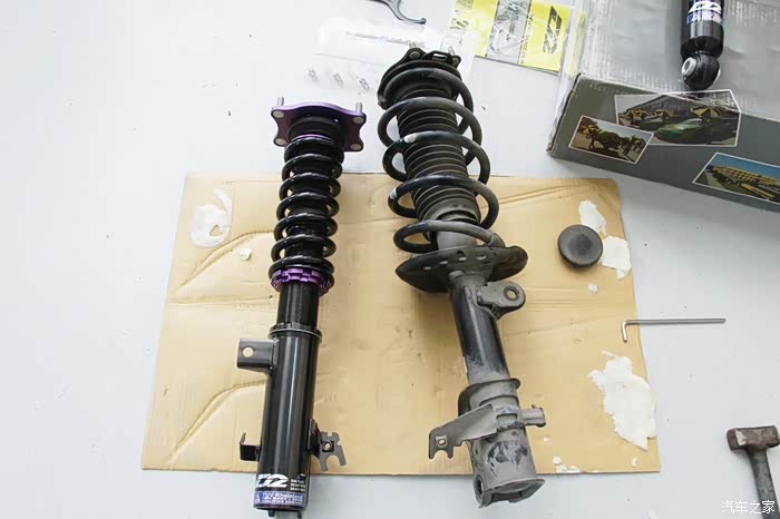 所以决定对车底盘升级. 改装D2绞牙避震器.车子降低后路感更清晰,提升操控、仰制侧倾、降低车身.小量降低车身有效保护避震不伤筒身.
