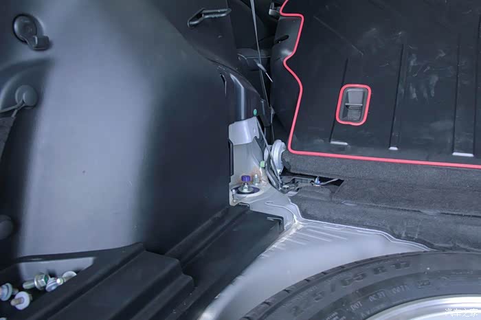 前避震调整阻尼的位置,师傅调试的是前20,后8,顺时针是硬,逆时针是软。打开机盖,随时也可以自己调整!