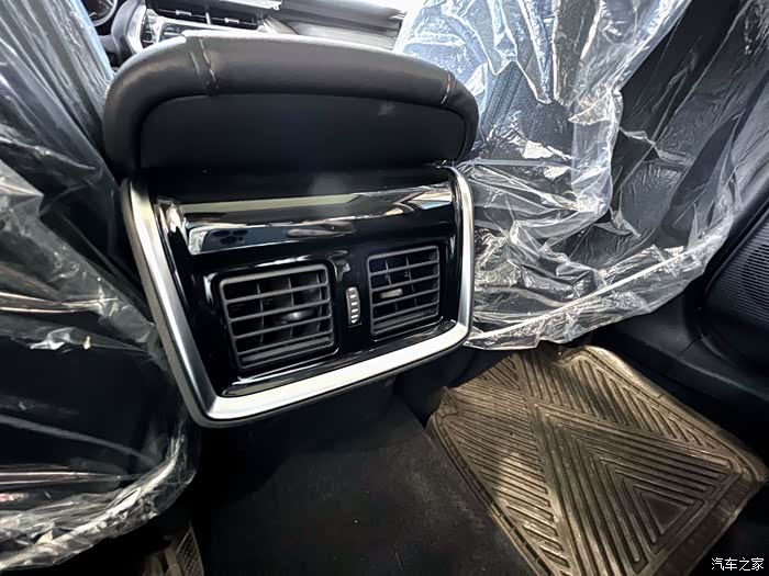 精装修的后排出风口,比RAV4多了钢琴烤漆面板和银色饰条。但依旧没有风量、模式等控制按键。并没有体现出后排乘客的尊贵和高级来。下方的双Type-c充电口还是有的,中央通道的鼓包也还是有的。