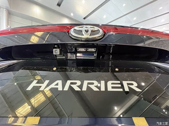 来到车尾,Harrier尾窗的倾斜角度比RAV4更大,一根几乎贯穿的红色尾灯非常吸睛,与尾翼下方的超长高位刹车灯共同展示出"两道杠"-中队长的身份(皇冠陆放>Harrier>奕泽、锐放)