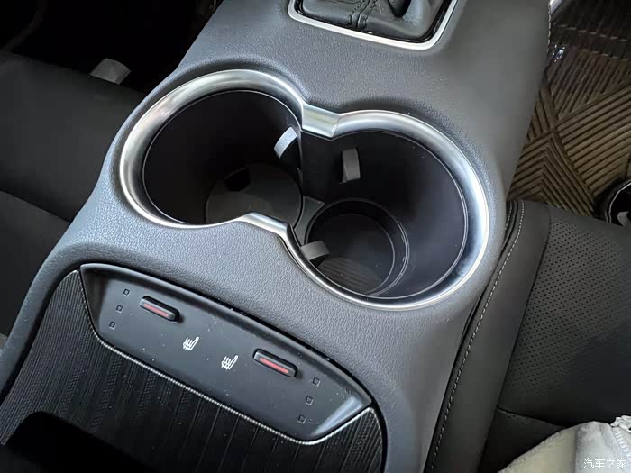 有个设计师的小心思是在前排杯架处。为了方便放置和拿取听装饮料、纸杯饮料,杯架底部有一个两公分左右的增高垫。如果放置大包装瓶装水,可以拿走增高垫,加深杯架纵深,让杯子更稳固。