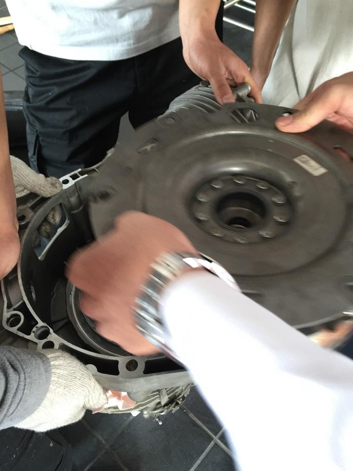 确认问题之後,谘询几个零件几时才能到位,经过一翻确认之後,得知零件可以在22日前到位,当下就请4S零件到齐後不可以安装,必须等我回来之後一起确认後在安装试车,於是俺修改回来的行程提早到21日回佛山,22日早上一早就前往4S店确认索赔问题以及费用,索赔的问题厂家仍有一位零件索赔主管位签核,但总监说不影响更换维修,於是进到库房里查验索赔的输入轴以及卡簧等零件,确认是新品零件之後就请技师开始进行组装,俺跟售後总监一直在边监督。