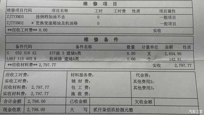 另外:提醒大家,我这次因为在57000公里时保养,没有更换拨箱油,在索赔的过程里,4S店给予不少的协助,不然暗厂家的鸟规定,6万要进行大保,这6万指的是6万之前,过了六万,在给你来一堆吱吱歪歪的说法,你要运气好,可能4S店就会协助,否则4S店都会依据厂家的办法来推托,就是要你自己负担的!