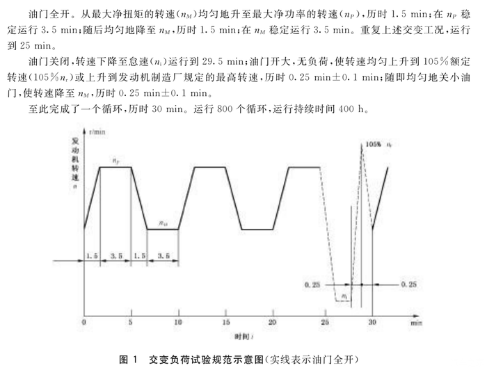 现在电动车最大马力一个比一个宣传的夸张,动不动好几百马力,远超燃油车,看起来是不是很牛?看看下面两个图表,一个是某国产车的实测值,最大马力只有宣传的80%,只持续了一下子就开始一路下跌了,基本上还超不过10秒。再看看第二章图,国标GB/T 19055发动机可靠性要求,30分钟一个循环,地板油25分钟,怠速歇4.5分钟+半分钟拉一次最大转速空转,这样的循环要持续800个。对比一下,电动车全马力开启连10秒都不一定能持续得到,更别说800个循环了,保时捷那个Taycan宣传是0-100加速20多次。