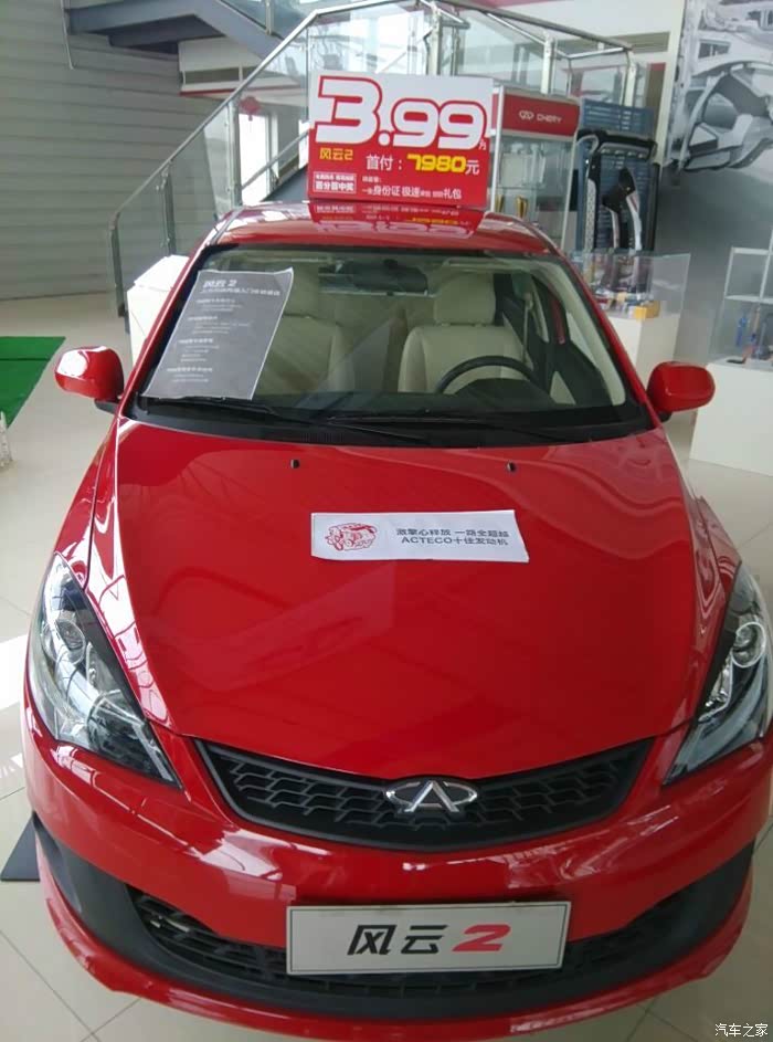 在论坛泡了一年,从一个小白变成了一个大白~~~~之前本来是打算买艾瑞泽7的,无奈TB口碑太差!家人不同意,虽然最后我顶着压力取得了最后的成果,但是我不想因为买车弄得一家人都不开心,所以果断打算买个QQ.蛋蛋。奔奔代步车,结果意外之下选择了风云2, 不多说,上图