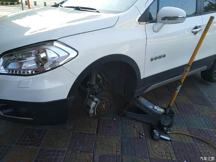 师傅还是很负责任的,对比来对比去,确定了可以安装才安装,四驱版是6.5j的轮毂,215的胎过宽,试了很久才全部装上,还有我加高了弹簧,整个车身高了很多,避震也高了不少,因此位置绰绰有余。
