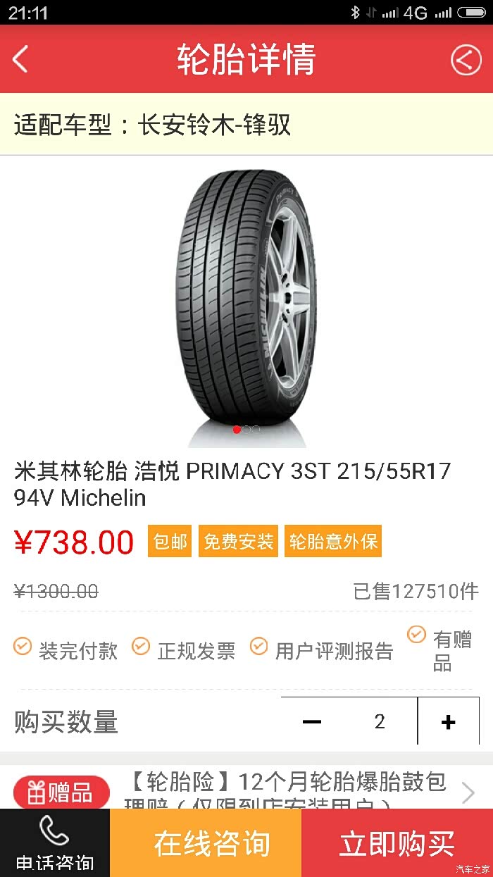 尊贵版锋驭升级215.55.17轮胎~米其林实践报告